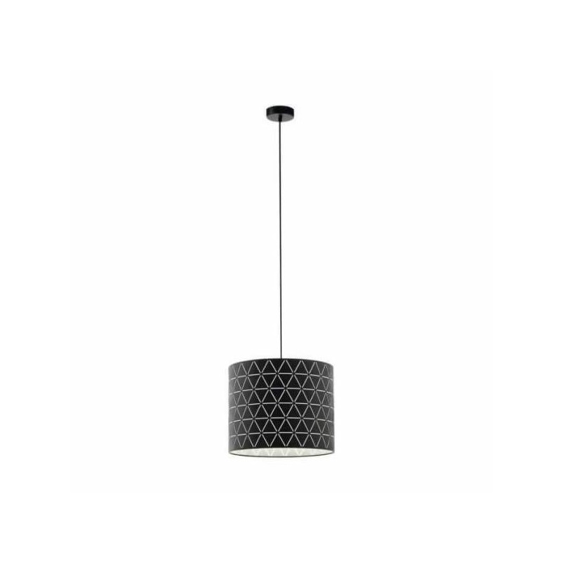 Ce luminaire en suspension RAMON de la marque Eglo est fabriqué en acier pulvérisé d’une structure noire et avec un film interne de couleur blanche. Le motif de découpe géométrique donne à cet abat-jour un design indépendant. Une ampoule E27 pour illuminer votre intérieur.
