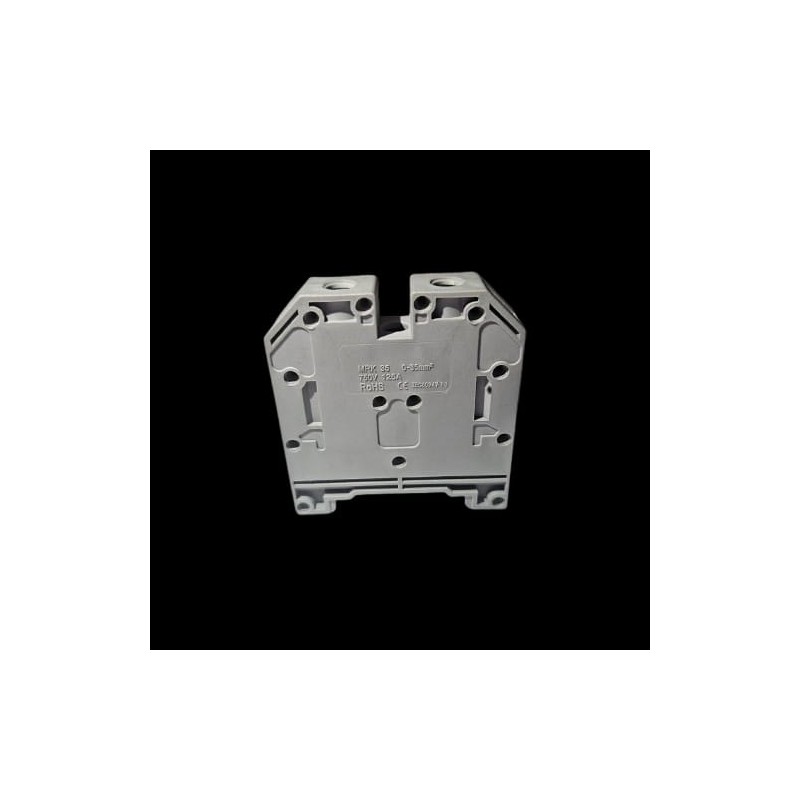 Le bloc de jonction à vis MRK 35 mm² est un élément essentiel pour les installations électriques industrielles et domestiques, conçu pour permettre la connexion sécurisée de plusieurs conducteurs électriques. Il est constitué d’un corps isolant en plastique résistant à la chaleur et aux chocs, et de contacts métalliques (souvent en cuivre ou alliage conducteur) qui assurent une excellente continuité électrique.